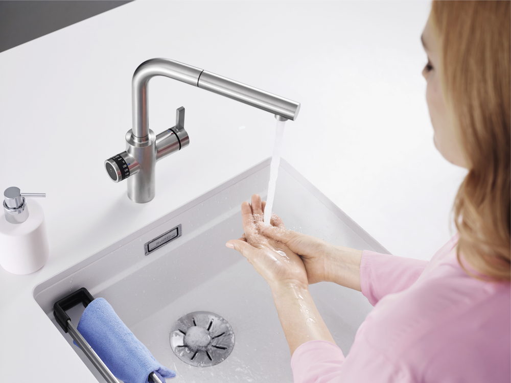 Blanco présente une première mondiale de taille avec le robinet EVOL-S Volume. Le premier robinet au monde qui dose exactement les quantités d’eau. Rapide et précis, ce robinet remplace donc votre verre doseur et vous permet de suivre vos recettes au centilitre près. Vous réalisez en plus d’importantes économies d’eau : plus besoin d’en verser pour arriver à la quantité souhaitée. C’est bon pour l’environnement et pour votre portefeuille ! La cerise sur le gâteau ? Le Dynamic Flow Control System qui régule la force du jet en fonction de la quantité demandée.